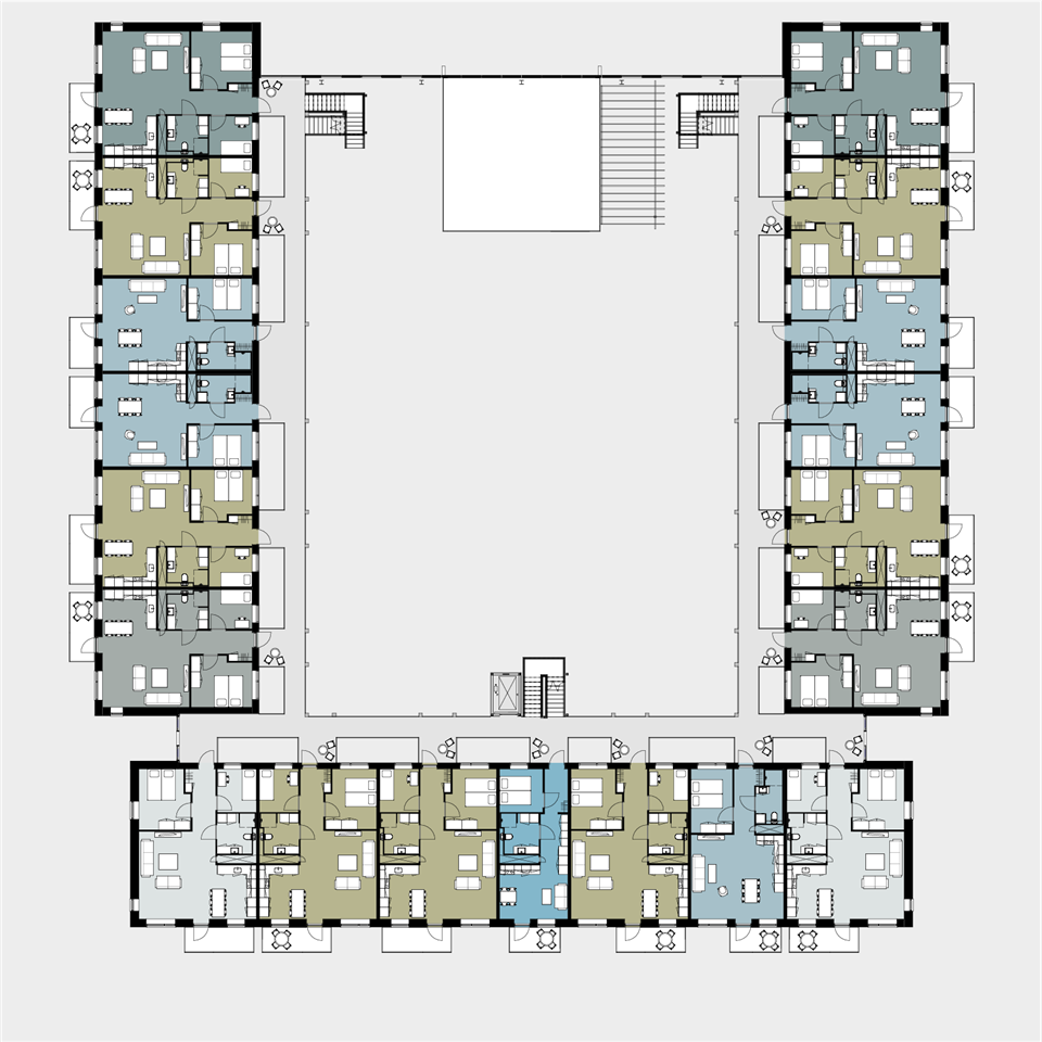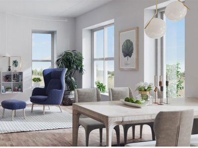 Indgangen til bygningen er sikret med en fælles porttelefon. I alle lejligheder er en dørtelefon med TV-display tilkoblet husets fælles porttelefon, så du fra lejligheden kan se, hvem der kommer og besøger dig og kun lukke op for dine gæster. På den måde er du med til at sikre, at der ikke kommer uvedkommende ind i Bovieran. Alle lejligheder har depotrum på 3 kvm i kælderen. Der er elevator til alle etager.